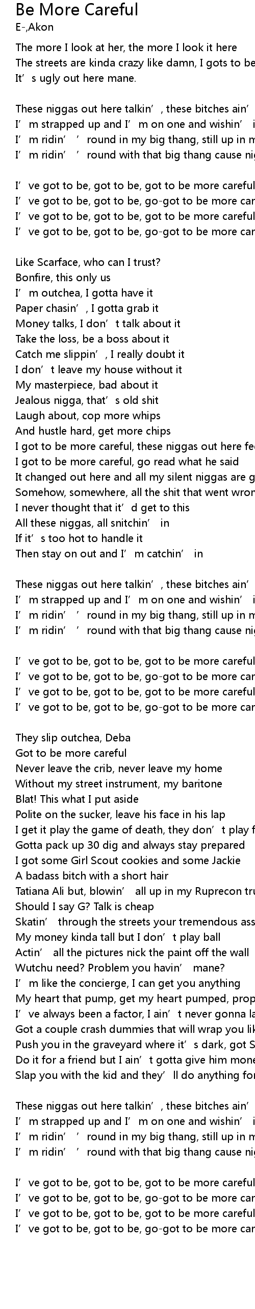 | The streets are kinda crazy like damn, I gots to be more careful | |