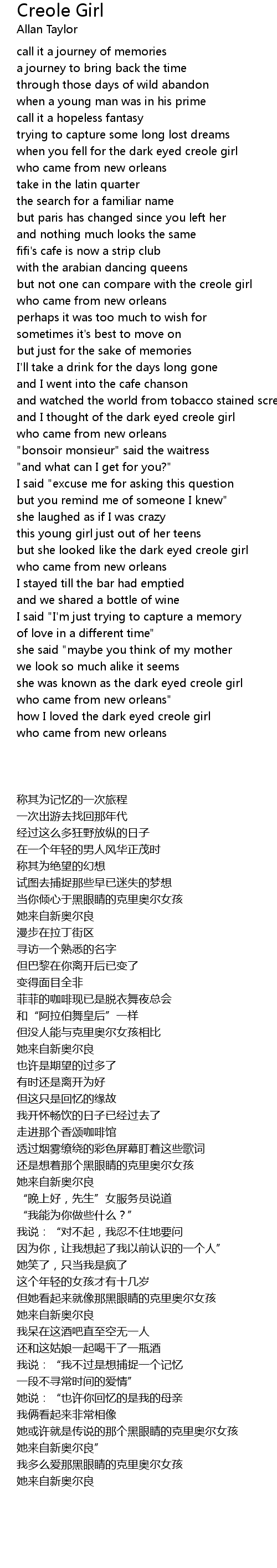 and I thought of the dark eyed creole girl |