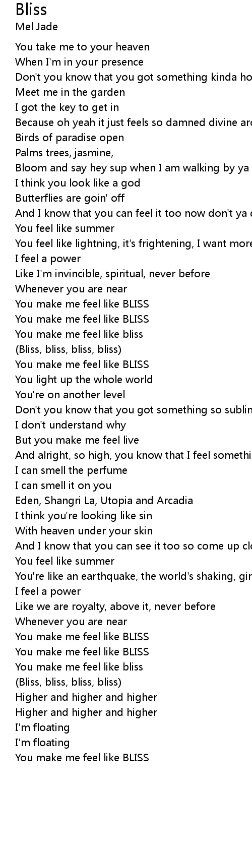 | You make me feel like bliss | |