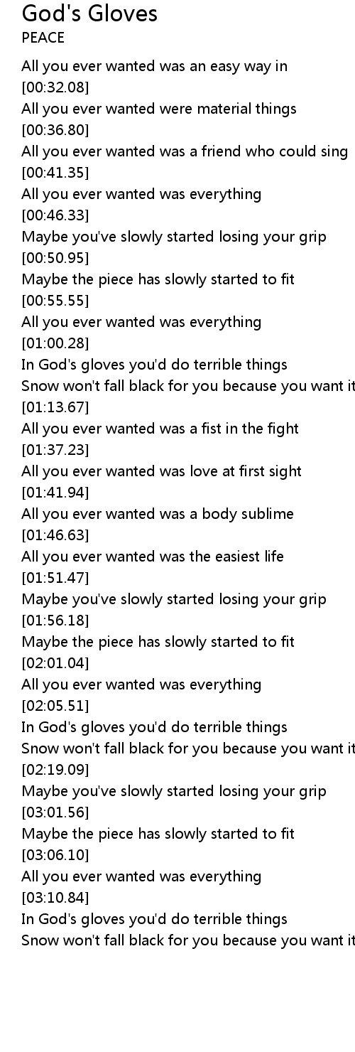 In God's gloves you'd do terrible things |