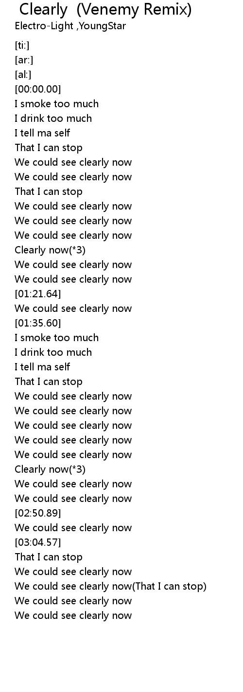| [03:27.69] | We could see clearly now(That I can stop) |
