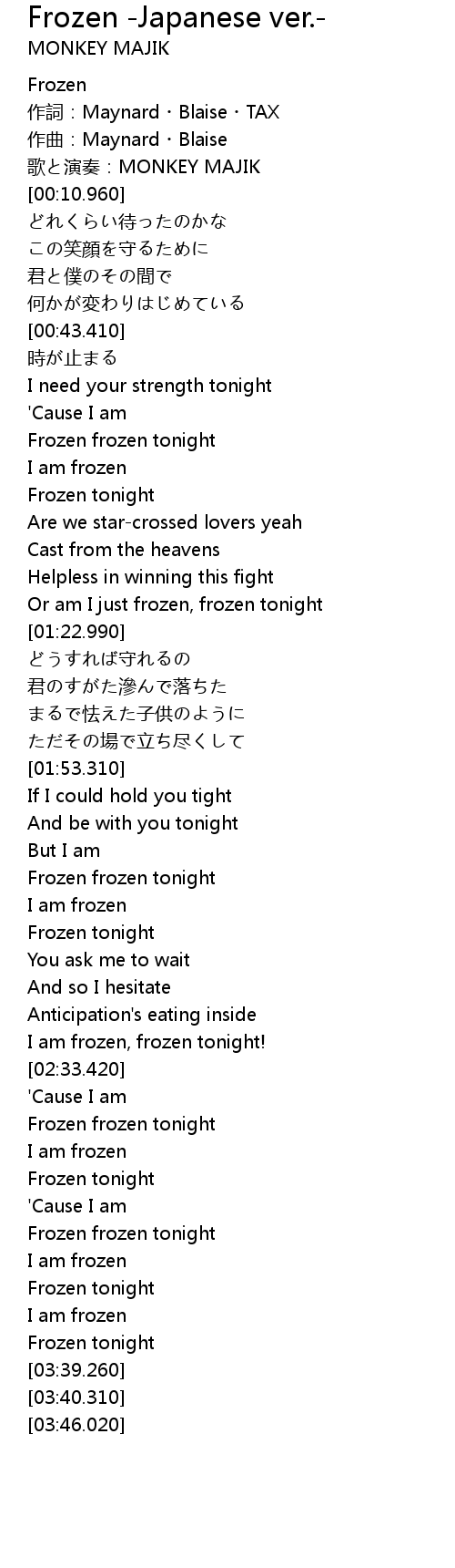 | [03:02.330] | Frozen frozen tonight |