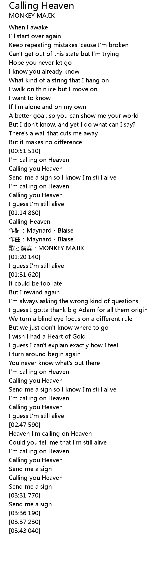 | [00:55.220] | Calling you Heaven |