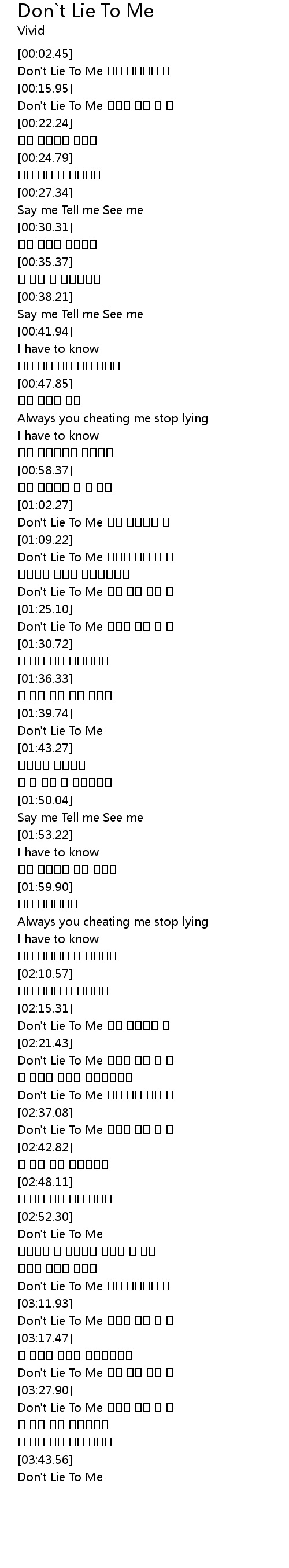 | [03:23.00] | Don't Lie To Me 내게 항상 하던 말 |