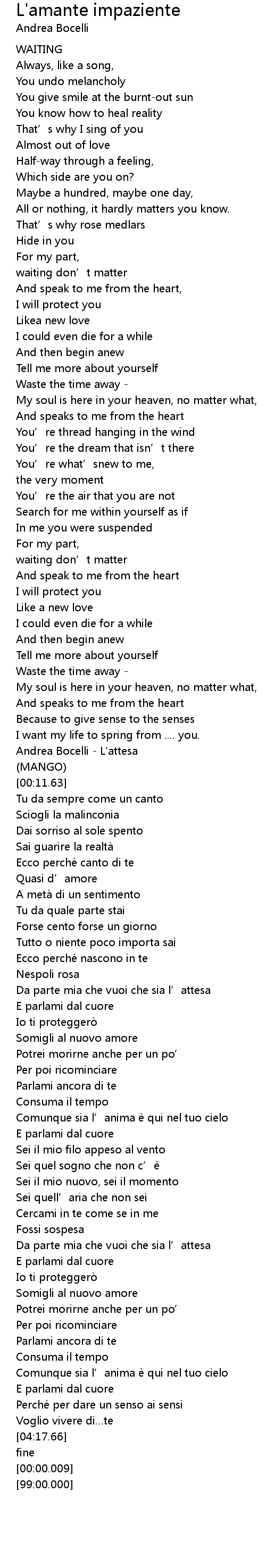 | [00:00.100] | Andrea Bocelli - L'attesa |