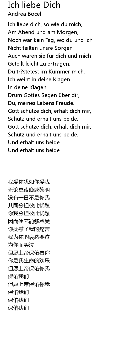 | Song | Ich liebe Dich |