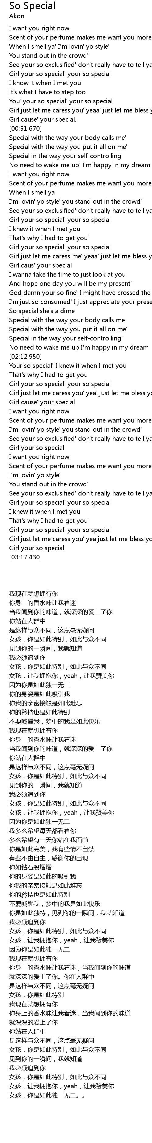 | [02:59.650] | Girl your so special' your so special |