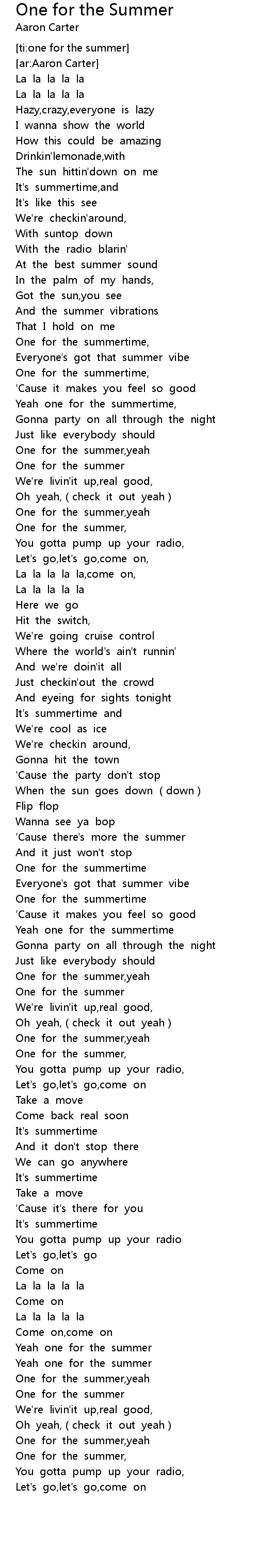 | [00:48.309] | One for the summer |