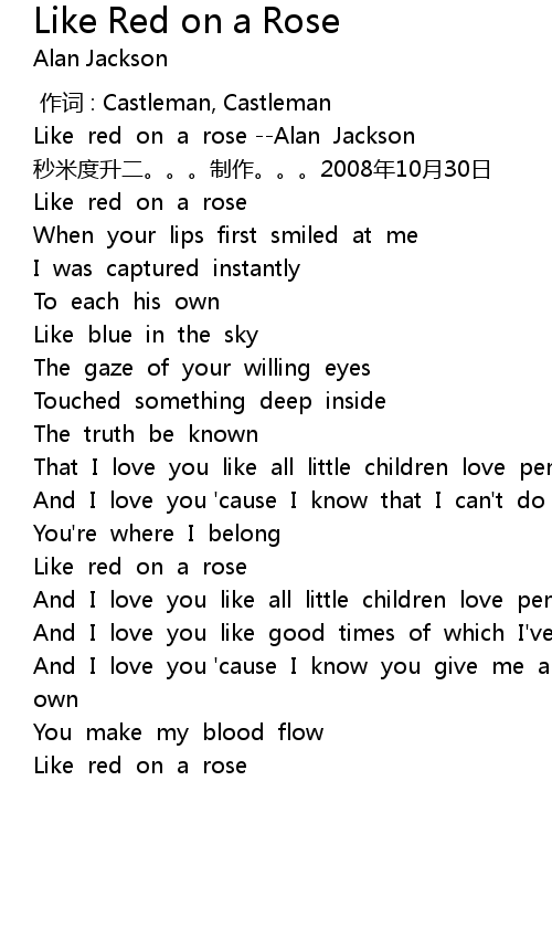 | [00:01.11] | Like red on a rose Alan Jackson |