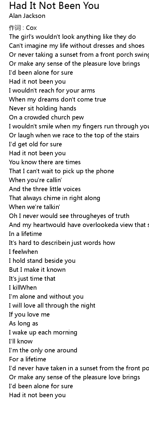 | Had it not been you |