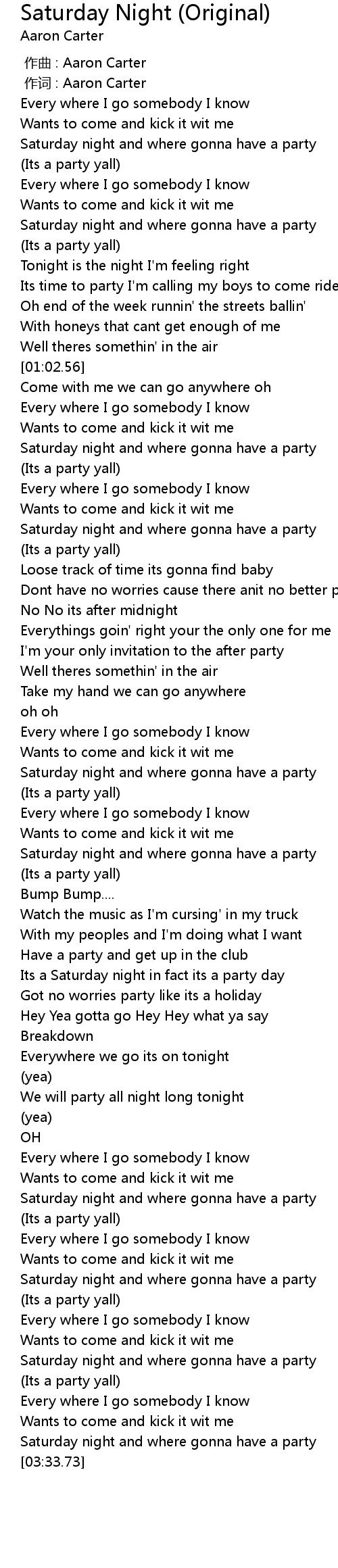 | [00:01.00] | 作词 : Aaron Carter |