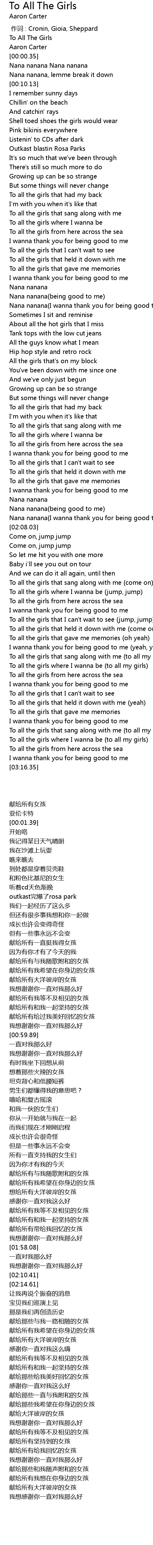 | [02:49.43] | To all the girls where I wanna be to all my girls |