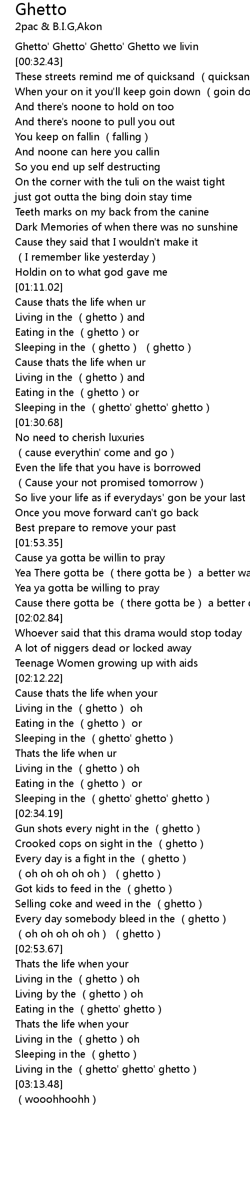 | [00:22.59] | Ghetto' Ghetto' Ghetto' Ghetto we livin |