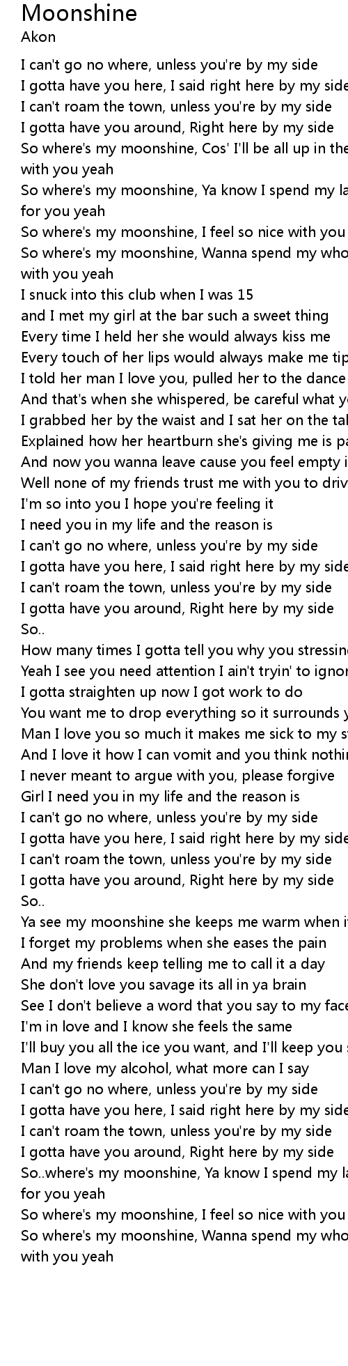So where's my moonshine, I feel so nice with you yeah |