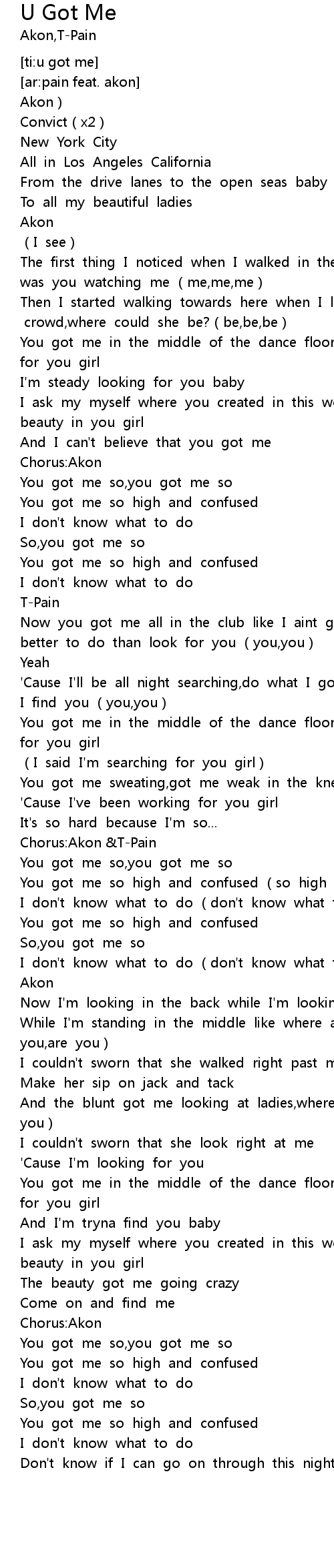 | [01:28.593] | Now you got me all in the club like I aint got nothing better to do than look for you you, you |