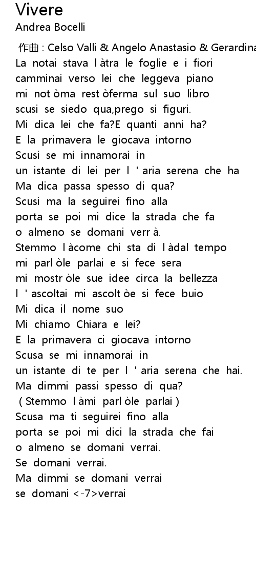 | [00:00.00] | 作曲 : Celso Valli & Angelo Anastasio & Gerardina Trovato |