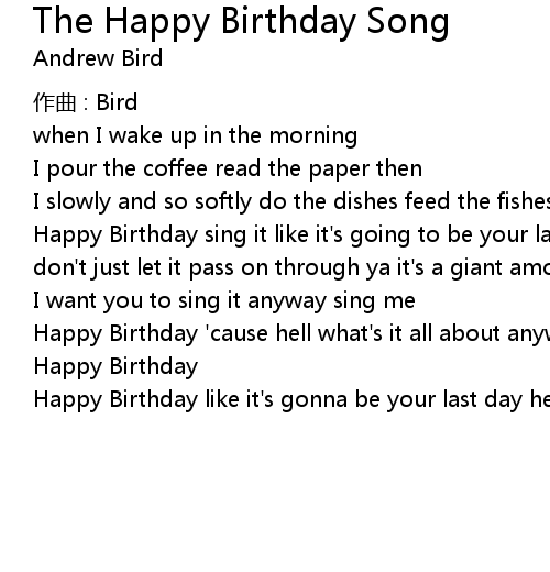 | Happy Birthday sing it like it' s going to be your last day like its hallelujah don' t just let it pass on through ya it' s a giant among cliches and that' s why | |
