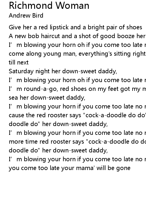 | I’m blowing your horn if you come too late no no, your mama' will be gone yeah cause the red rooster says "cock-a-doodle do do" the wishing woman says "and a doodle do" her down-sweet daddy, | |