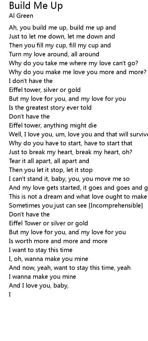Ah, you build me up, build me up and |