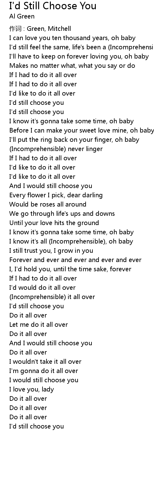 | I'd still feel the same, life's been a (Incomprehensible), oh baby | |