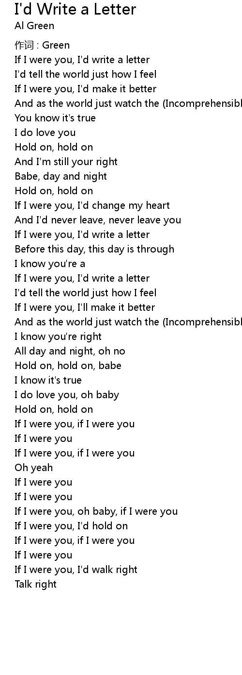 | Song | I'd Write a Letter |