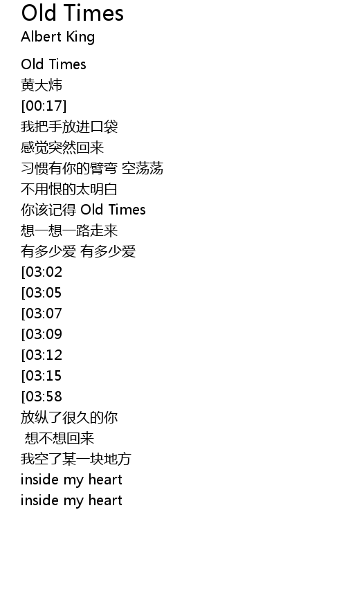 | [00:48] | 你该记得 Old Times |