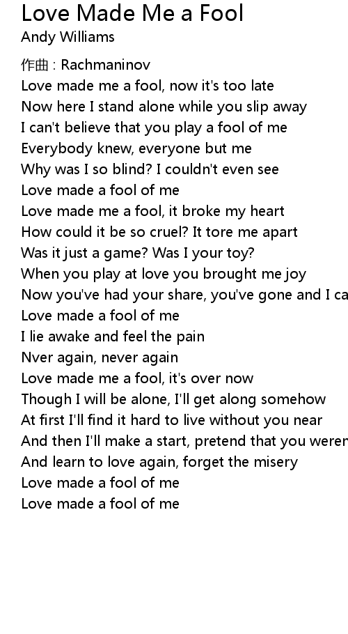 | Love made me a fool, now it' s too late | |
