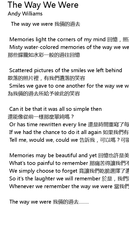| Whenever we remember the way we were 當我們回憶起我倆的過去 | |