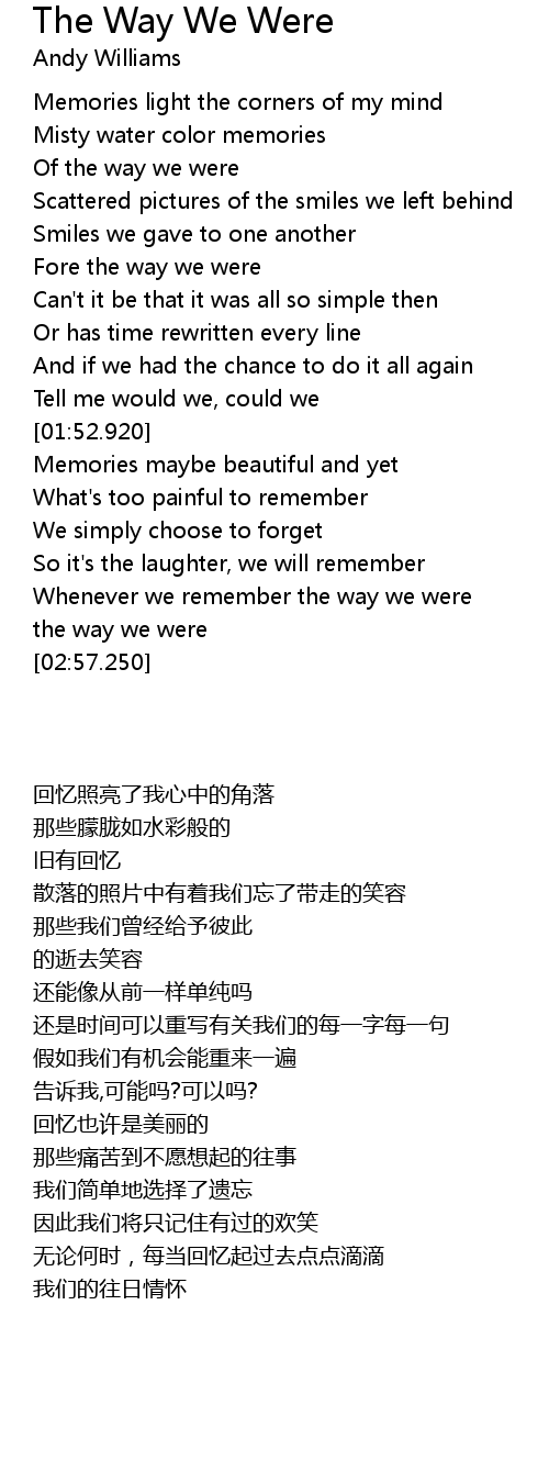 Whenever we remember the way we were |