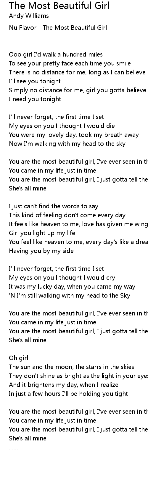 | You are the most beautiful girl, I' ve ever seen in this world | |