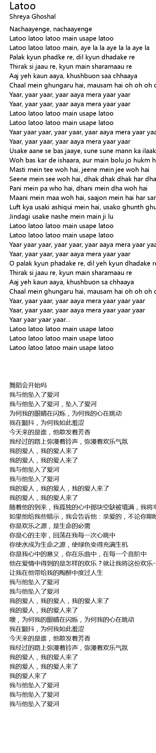 Latoo latoo latoo main, aye la la aye la la aye la |