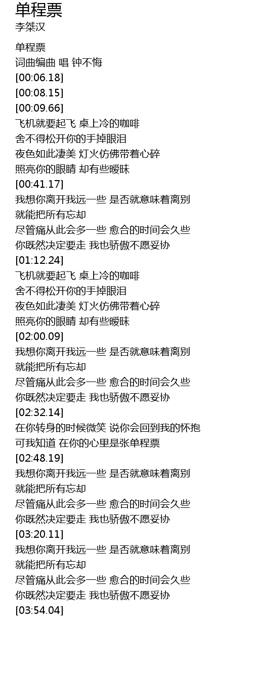 | [00:04.42] | 词曲编曲 唱 钟不悔 |