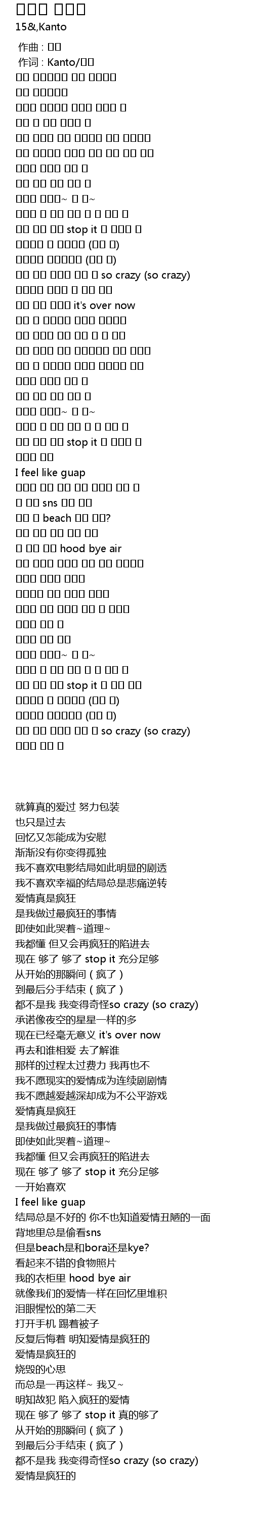 | [03:17.830] | 내가 아닌 이상한 내가 돼 so crazy (so crazy) |