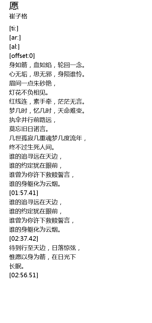 | [02:45.49] | 惟愿以身为箭,在日光下 |