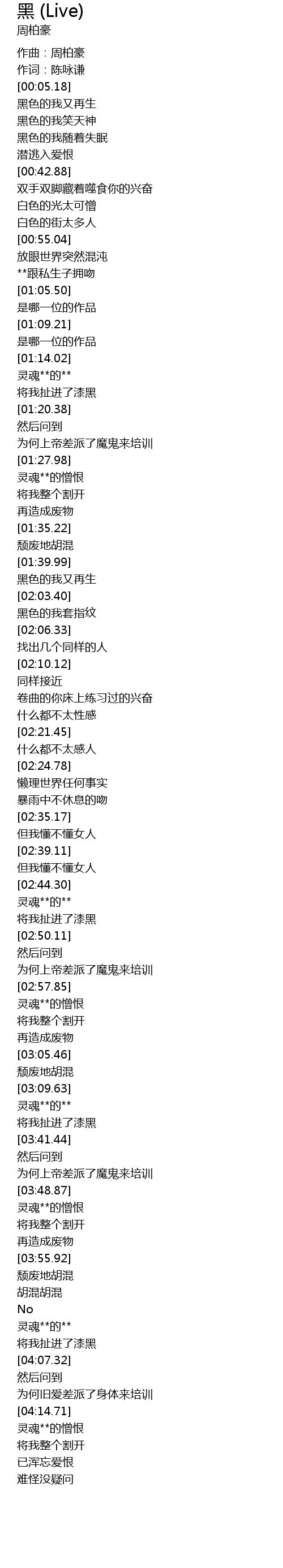 | [02:00.95] | hēi sè de wǒ yòu zài shēng |