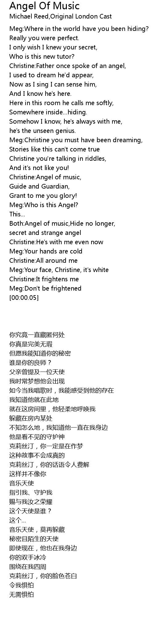 Christine:Father once spoke of an angel, |