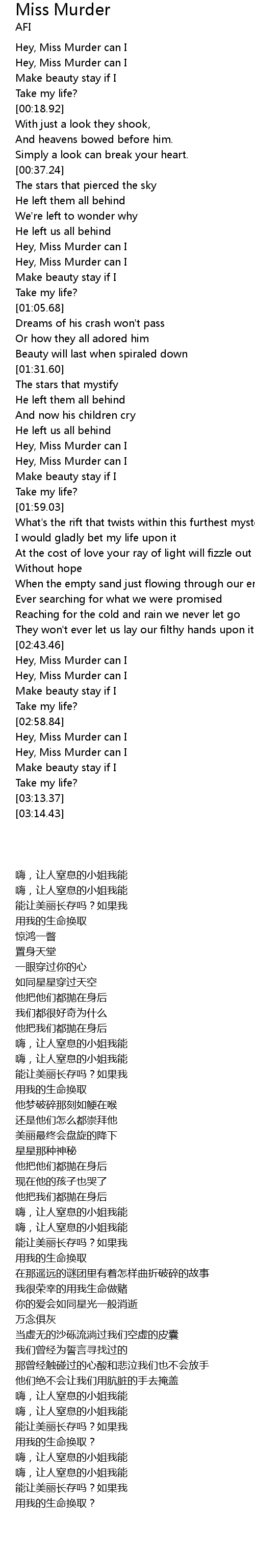 Hey, Miss Murder can I |
