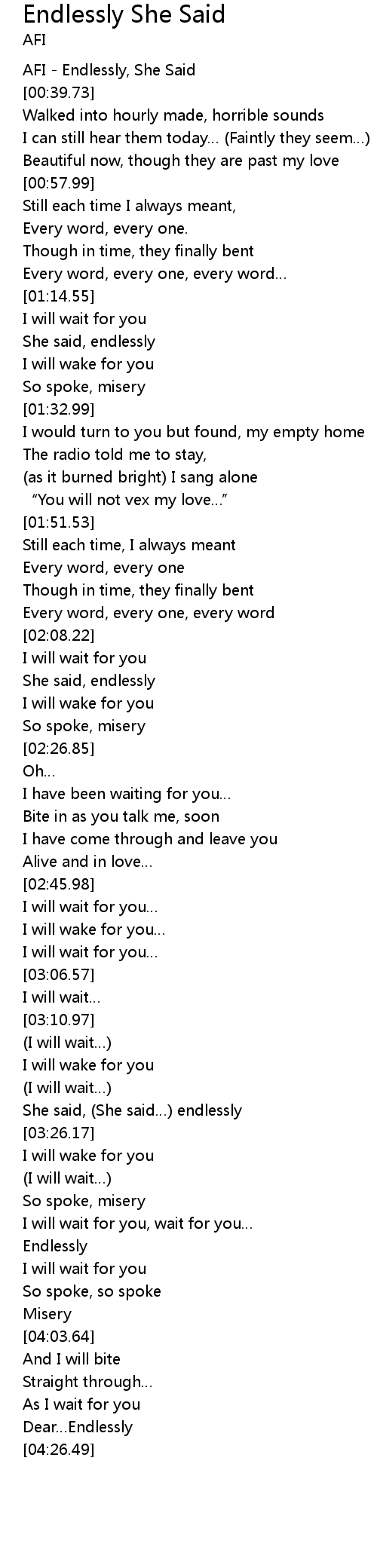 | [00:00.00] | AFI - Endlessly, She Said |