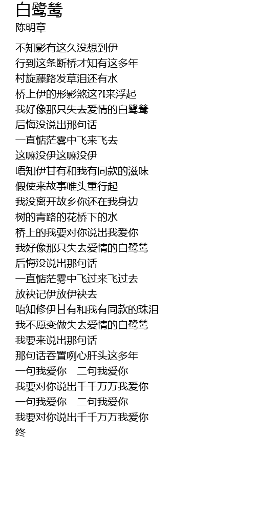 | [01:01.65] | 我好像那只失去爱情的白鹭鸶 |