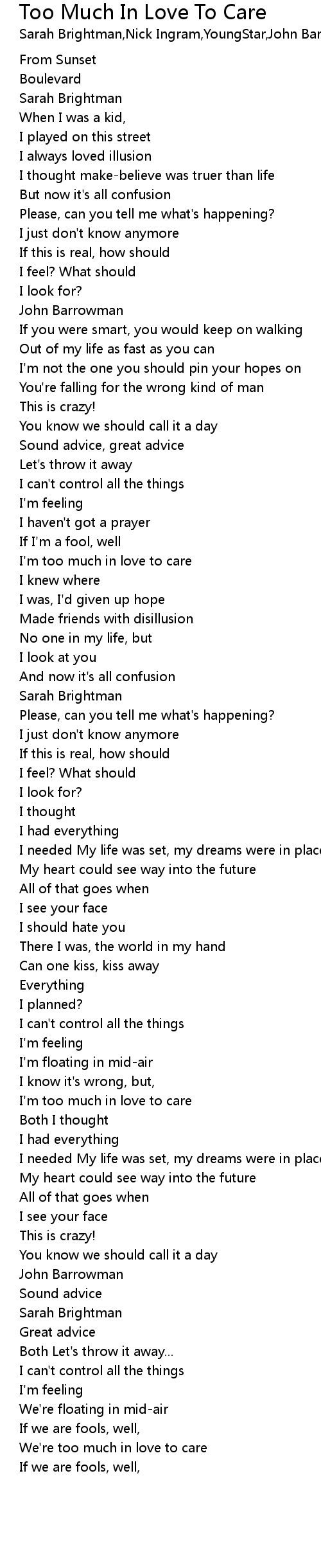 I'm too much in love to care |