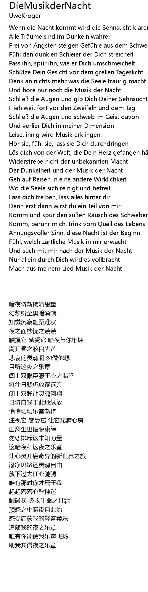 | [04:54.60] | Mach aus meinem Lied Musik der Nacht |