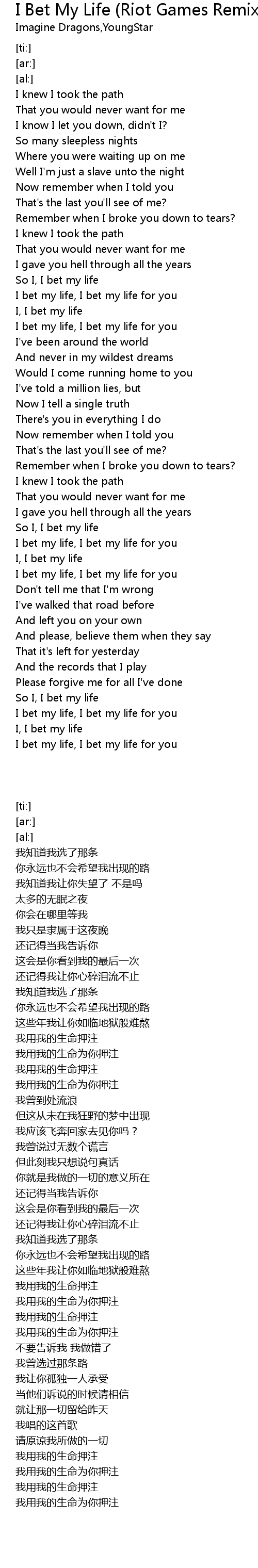 I bet my life, I bet my life for you |