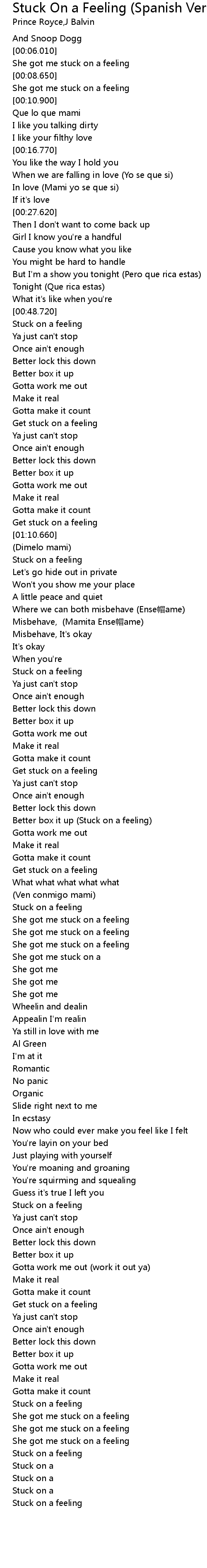 | [01:46.790] | Stuck on a feeling |