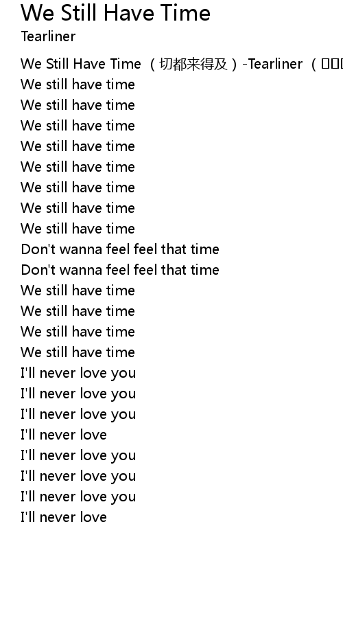 | [00:00.00] | We Still Have Time (切都来得及)-Tearliner (어라이너) |