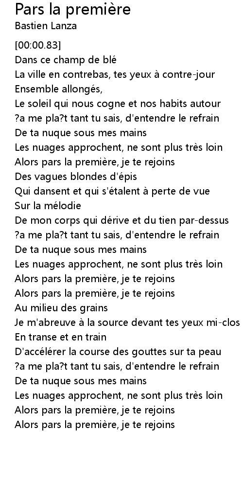 | [01:50.98] | Alors pars la premiè re, je te rejoins |