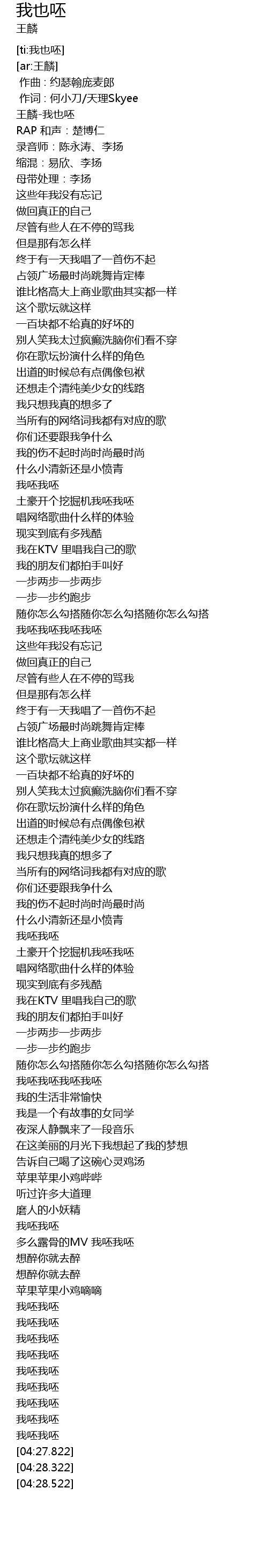 | [00:06.397] | RAP hé shēng: chǔ bó rén |