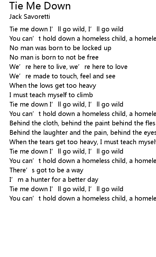 | Tie me down I' ll go wild, I' ll go wild | |