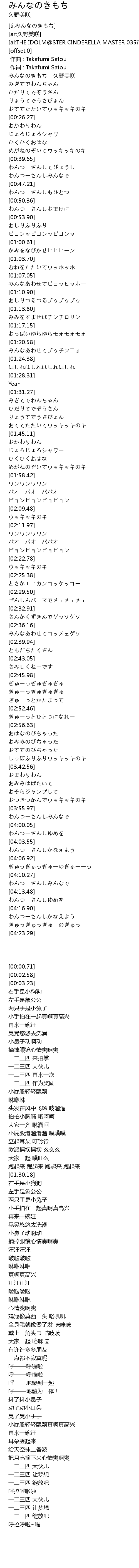 | [00:00.71] | みんなのきもち - 久野美咲 |