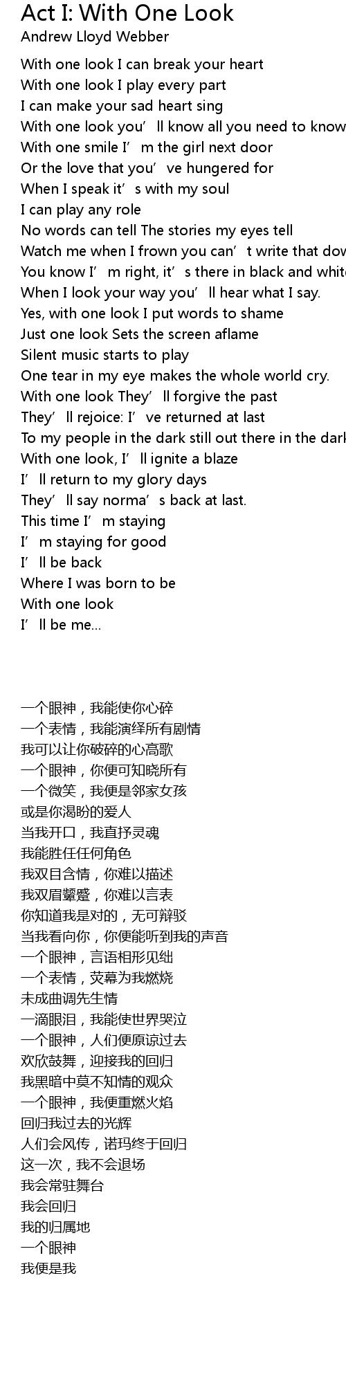 | Song | Act I: With One Look |