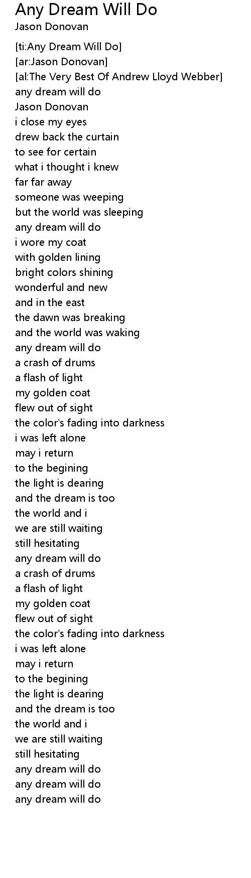 [ti:Any Dream Will Do] |